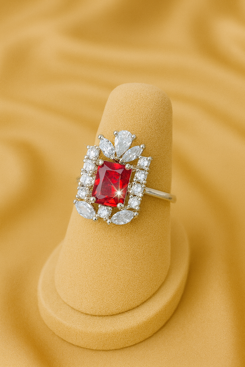 Experience true luxury with our Emerald Majesty Diamond Halo Ring, a masterpiece of elegance and brilliance. At its center lies a vivid emerald-cut green gemstone, beautifully framed by a halo of sparkling diamonds in mixed shapes for maximum radiance. Set in a polished silver band, this ring is designed to capture attention and exude timeless sophistication. Perfect for engagements, anniversaries, or statement jewelry lovers, this piece is a must-have for anyone who values refined craftsmanship.
