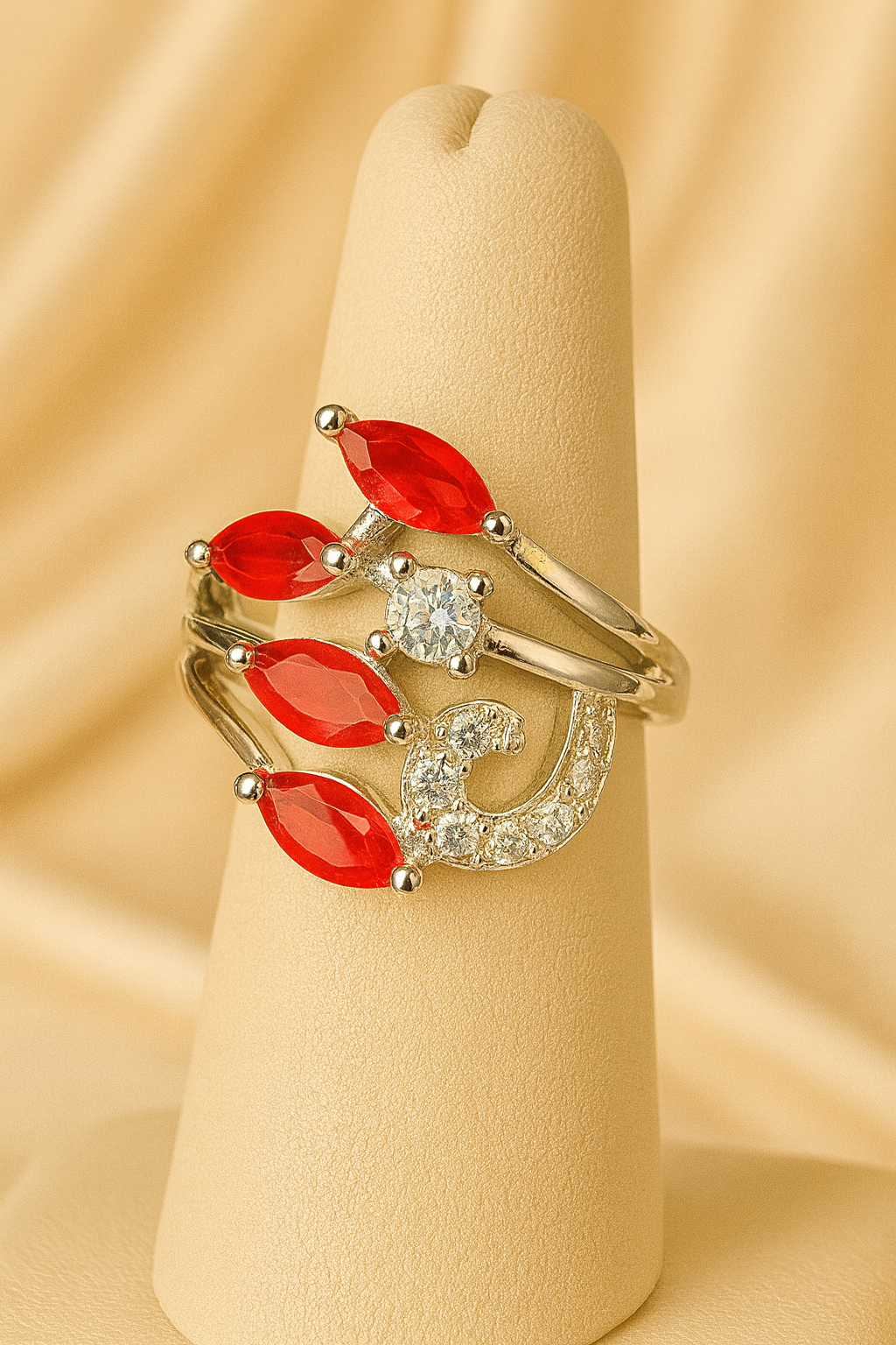 The Noir Grace Ring exudes timeless allure with its sleek silver band adorned by glossy marquise-cut black gemstones and a sparkling central zircon. The wave-like curve encrusted with delicate crystals adds a touch of sophistication, creating a perfect fusion of elegance and bold charm. Ideal for evening wear or formal occasions, this ring is a statement of refined confidence.